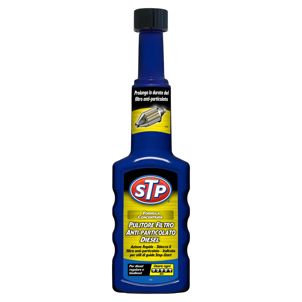 Tutte le auto diesel fabbricate dopo il 2009 presentano un filtro antiparticolato (DPF) inserito nel sistema di scarico, che intrappola le particelle dannose di fuliggine e ne evita la dispersione nell’ambiente. Il Pulitore Filtro Anti-Particolato Diesel (DPF) STP® è formulato per rimuovere le particelle di fuliggine e carbonio dai filtri antiparticolato diesel.